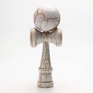 Kendama X din Lemn, Model Cracked Alb & Auriu