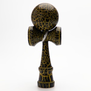 Kendama X din Lemn, Model Cracked Negru & Galben