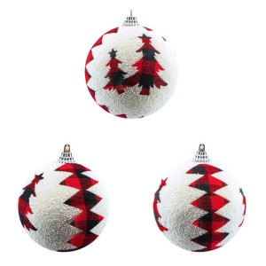 Set globuri, alb cu bradut rosu, 8 cm, 3 buc/set