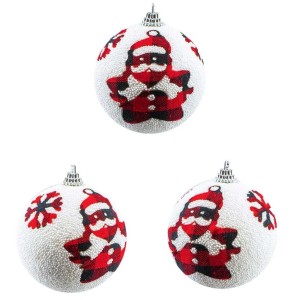 Set globuri, Mos Craciun, alb, 8 cm, 3 buc/set