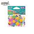 Set de 100 floricele textile din pasla colorata, ideale pentru decoratiuni handmade, felicitari, albume si proiecte creative la scoala sau acasa.