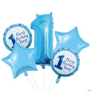 Set Baloane Metalizate First Birthday Boy Albastru