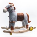 Realizat din plus moale, placut la atingere, si dotat cu sunete realiste de cal, jucaria stimuleaza imaginatia, coordonarea si simtul echilibrului copilului. Cadrul solid din lemn si sistemul cu roti rezistente garanteaza siguranta si stabilitate in timpul jocului. Designul in nuante calde de maro si gri ofera un aspect elegant, perfect pentru orice camera de copil.