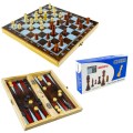 Jocul 3 in 1 Sah, Table, Dame din lemn 24 x 12 cm este o optiune practica, educativa si eleganta, potrivita pentru toate varstele, oferind ore intregi de divertisment de calitate.