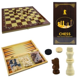 Joc 3 in 1, Sah, Table, Dame, set din lemn, 34 x 17 cm