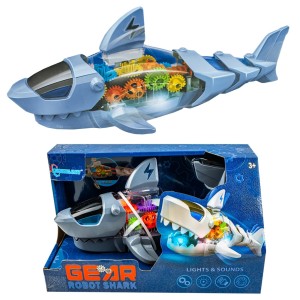 Jucarie rechin mecanic, transparent, cu lumina si sunet
