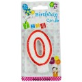 Lumanare Aniversara cu Cifra 0, Alba cu Margine Rosie