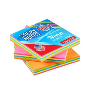 Cub notite autoadezive, 75 x 75 mm, neon, multicolor, OFFISH...